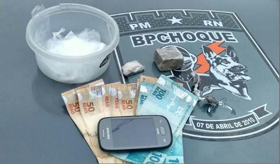 Policiais do Batalhão de Polícia de Choque (BPChoque) fecharam mais um ponto de tráfico de drogas, na tarde desta sexta-feira (17), na Rua Padre Raimundo Brasil, no Bairro de Nova Descoberta, em Natal. Desta vez, um adolescente de 15 anos foi apreendido com entorpecentes e outros vestígios que motivaram o flagrante, principalmente a grande quantia em dinheiro fracionado. O detido foi levado à Delegacia Especializada no Atendimento a Adolescentes (DEA) para os procedimentos cabíveis.