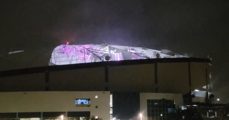 Telhado de estádio é destruído durante passagem do furacão Milton - Foto: Reprodução vídeo.